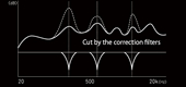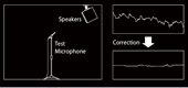 ●室内音质 Room Acoustic(自动音场补正),是专业音响工程师所使用的技术。 通过空间的形状和壁面的材质、音箱和功放的影响,将发生变化的音质理想化,实现更好的音响。 连接测定用麦克风,可自动调合目标的频率特性。 目标频率特性,可定为降半音或加重低音等个人喜好特性。 |